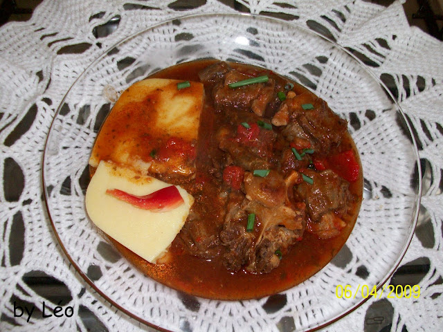 Lave a rabada e coloque em uma panela com água e vinagre. Ferva por aproximadamente 15 minutos. Reserve.