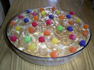 Leve à batedeira o açúcar, as gemas e a manteiga. Bata por mais ou menos cinco minutos, até formar uma massa branca uniforme. Depois de bater, acrescente o creme de leite à massa e mexa bastante. Coloque o creme no fundo e nas laterais do pirex. Distribua os biscoitos nas laterais e no fundo da travessa. Sobre o biscoito, coloque uma camada de creme. Repita este processo até que o pirex esteja totalmente cheio. Corte o excesso de biscoitos nas laterais da travessa. Para a cobertura, utilize o doce de leite sobre a última camada de creme. Decore com balas jujuba. O tempo de preparo não ultrapassa uma hora. Leve à geladeira até o momento de servir.