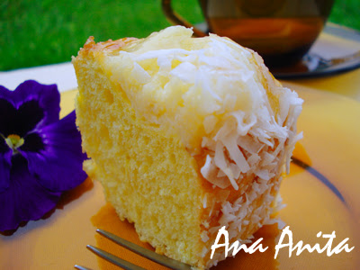 Retire do forno, deixe esfriar e aplique a geléia de brilho e o coco ralado.